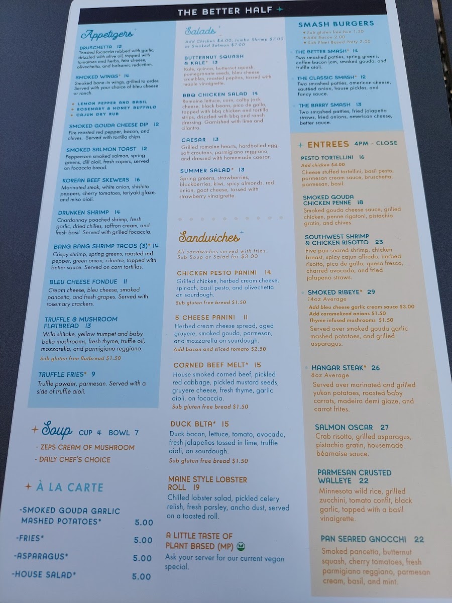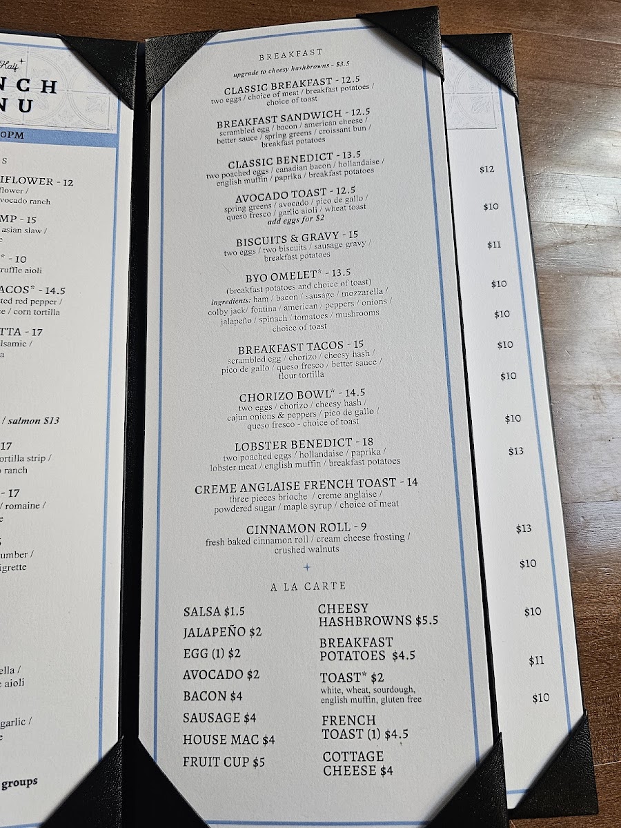 (breakfast potatoes and choice of toast) ingredients: ham / bacon / sausage / mozzarella / colby jack/ fontina / american / peppers / onions / jalapeño / spinach / tomatoes / mushrooms